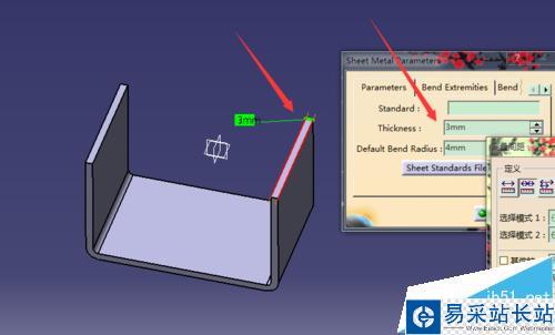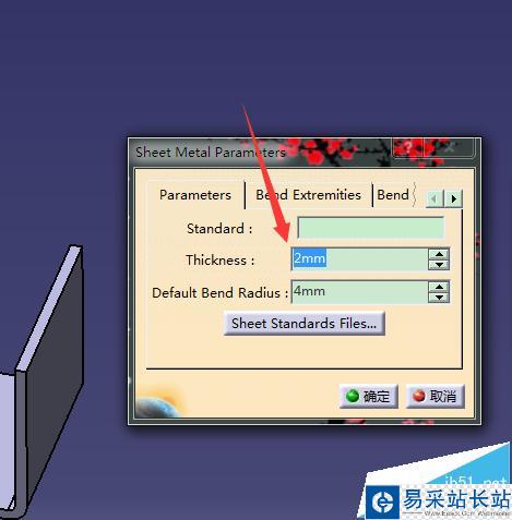 7、這一步比較關鍵,添加板材厚度,板材的厚度必須和折彎件的厚度一致,否則會出錯。