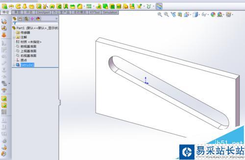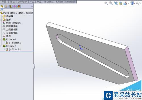 3、接下來,我們對同一個草圖,進行第二次特征操作。在特征樹的拉伸特征前面的“+”號上面點一下,這時可以看到下一級的子目錄。也就是我們第一次創建的草圖。