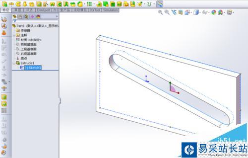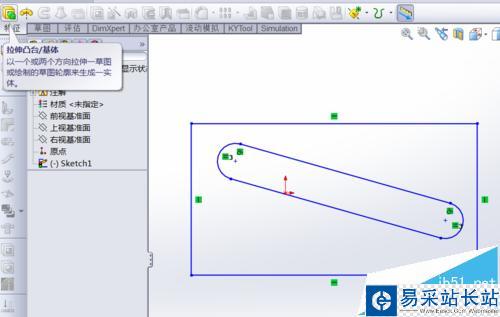 4、在特征樹中點中這個草圖。并再次選取一個特征進行操作。這里我們仍然選擇拉伸操作。