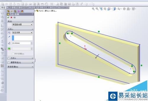 2、對這個草圖進行第一次特征操作,這里我們選取拉伸操作。設置好拉伸的各種參數。(這里設置拉伸高度為10mm),點擊確定。