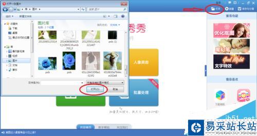 2、點擊右上角的”打開“按鈕,會彈出對話框,選擇需要打開的圖片,點擊對話框中的”打開“。