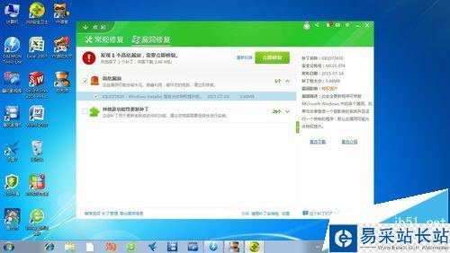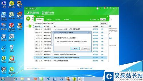 7、點擊是然后卸載完成后他要求重啟電腦你就點擊重啟電腦就行了,重啟后他會把你出現漏洞修復的提示不要去管他重復2,3,4步的操作,他會掃描漏洞等漏洞掃描后點擊這個KB3072630的漏洞后出現下圖