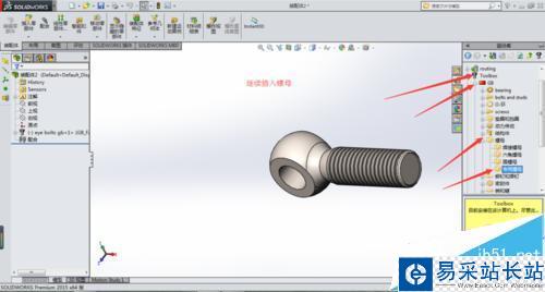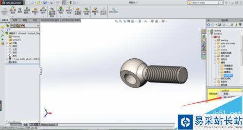 1、先新建一個裝配文件,利用標準件庫插入一個螺栓,完成后再插入對應的螺母。
