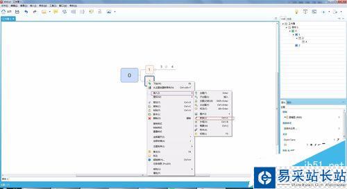 3、在中心主題選擇插入子主題,點擊左上角或者點擊鼠標右鍵都可顯示。