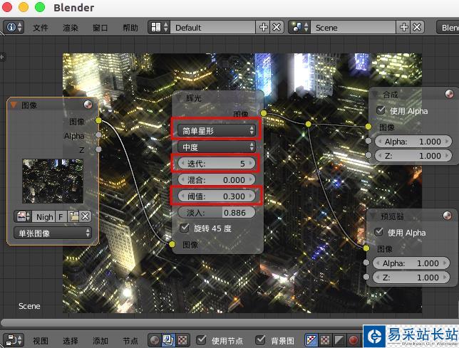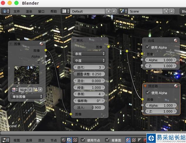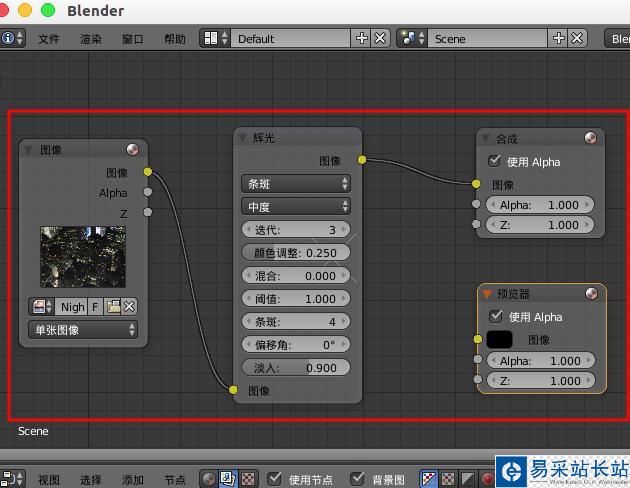 制作圖片的輝光效果,可以直接使用blender中濾鏡的輝光,然后合理的設置就可以得到自己需要的輝光效果。