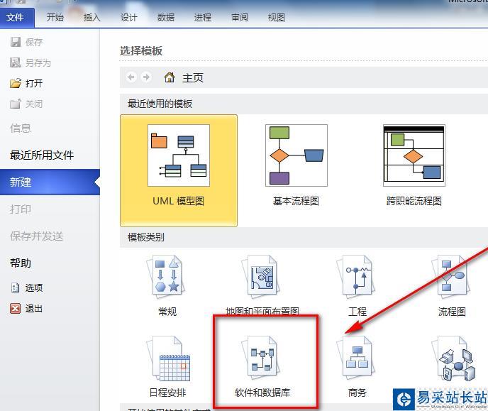 2、打開visio,選擇如圖紅框中的“軟件和數(shù)據(jù)庫”選項(xiàng)