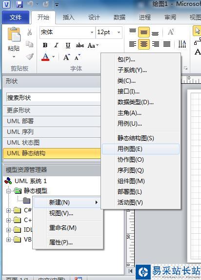6、在右鍵菜單中有很多UML圖的類型,畫法基本和ROSE差不多
