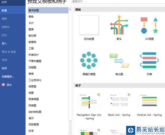 1、雙擊打開Edraw Max設計軟件工具,找到“文件--->新建--->基本繪圖”,這時會在基本繪圖里展示各種不同的圖形模板,如下圖所示: