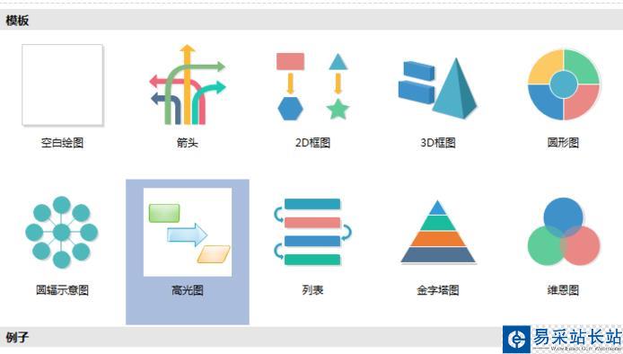 2、在眾多的圖形模板里,找到“高光圖”,并單擊“創建”圖標,創建新的繪畫,如下圖所示: