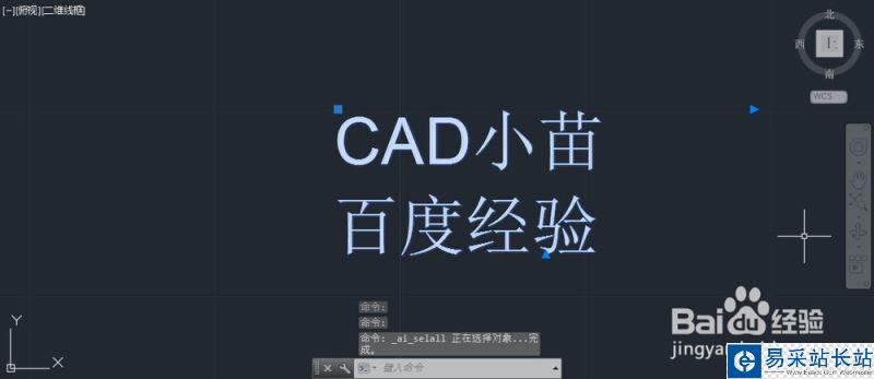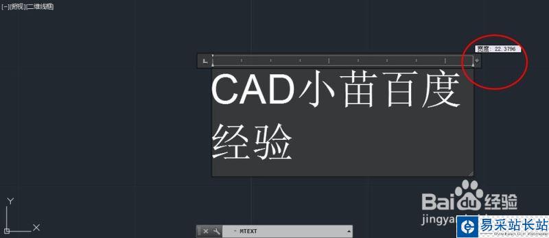 7、在多行文字外面單擊,確定多行文字內容并退出多行文字編輯器,單擊選中剛編寫的多行文字,可以看到雖然在文字中間加了回車,但文字還是一個整體。
