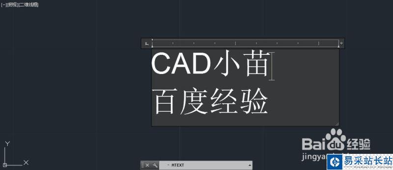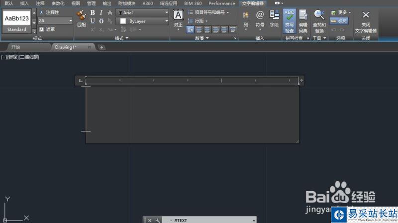 3、在圖中單擊確定多行文字的另一個對角點后,正式進入多行文字編輯器,會顯示標尺及多行文字編輯器的各種工具,如圖所示。