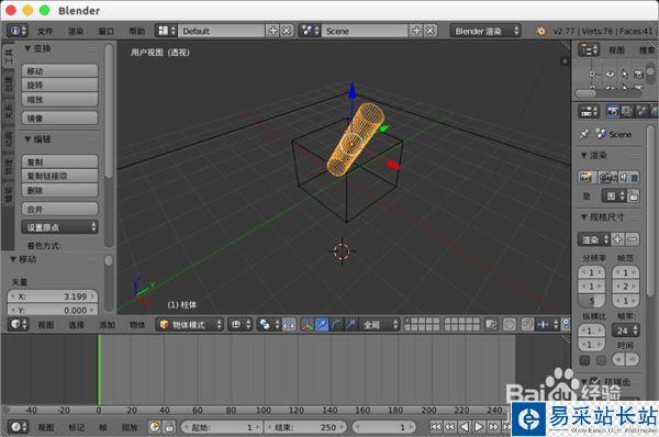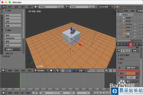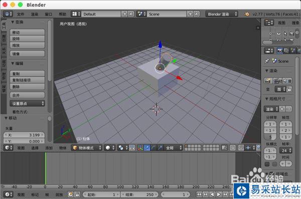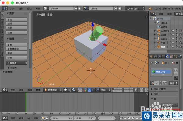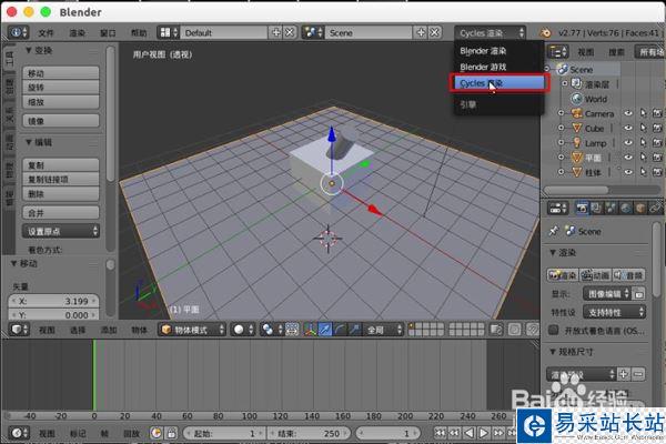 1、blender創建一個平面,一個立方體,還有一個圓柱體半個浸在立方體中。