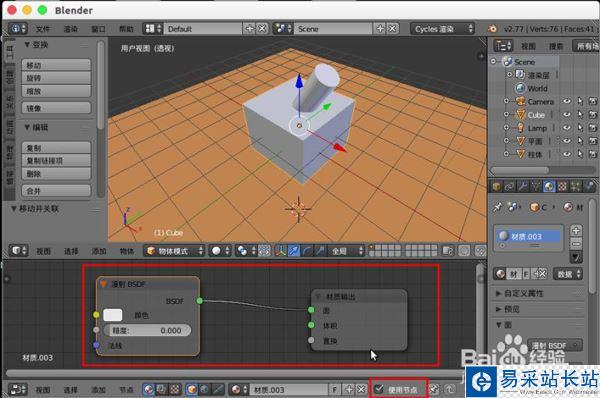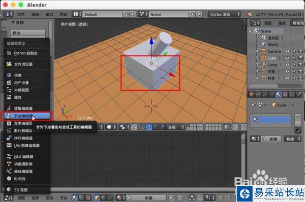 5、選擇“立方體”,切換到“節點編輯器”窗口。