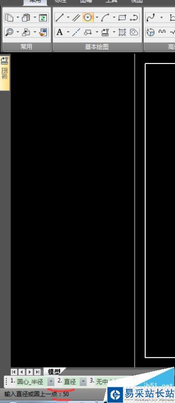 4、繪制一個(gè)直徑50的圓,并且為其添加中心線