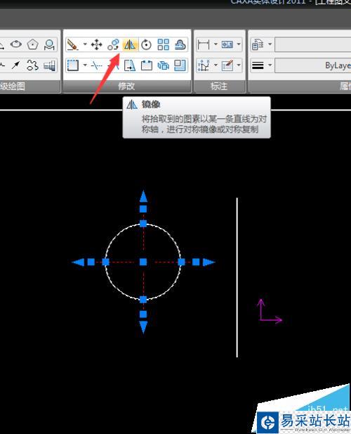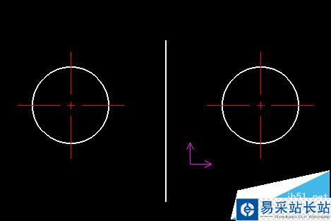 8、先選擇要鏡像的圓,然后再選擇軸線,鏡像結(jié)果如下;