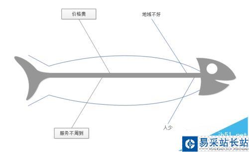 5、魚骨作為中心主線,連接各種原因,貫穿整個魚骨架構(gòu),如下圖所示: