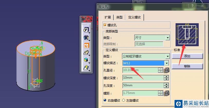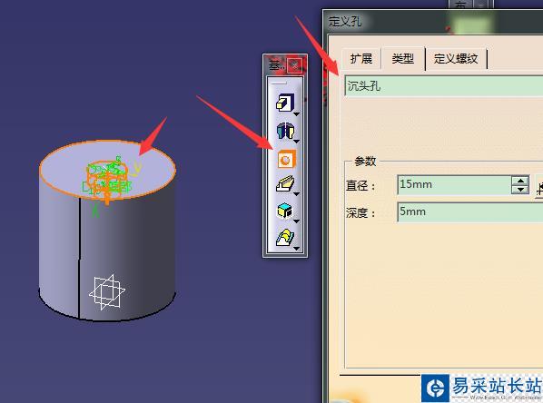 在繪制3D圖紙時(shí)候,我們可以直接繪制帶螺紋的沉頭孔,這樣方便易行。
