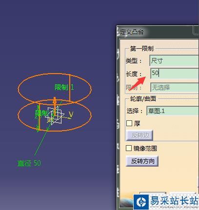 4、進(jìn)入草圖繪制一個(gè)直徑50的圓;