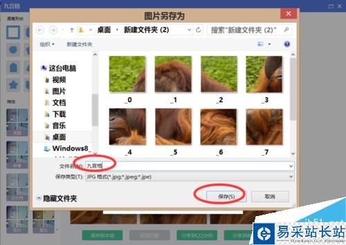 如果想要制作整張九宮格圖片,選擇“保存單張大圖”,輸入文件名,單擊確定。如圖所示: