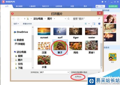 打開美圖秀秀主界面,首先點擊“打開圖片“,找到圖片保存位置,單擊打開。如圖所示: