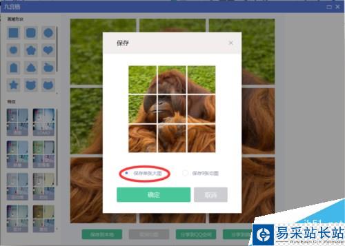 在彈出保存窗口中選擇“保存9張切圖”,然后選擇文件保存位置,單擊確定。如圖所示: