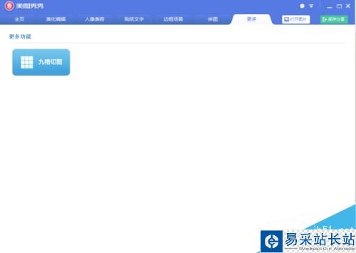 切換到“更多”選項卡,點擊“九宮切圖”開始切割圖片。如圖所示: