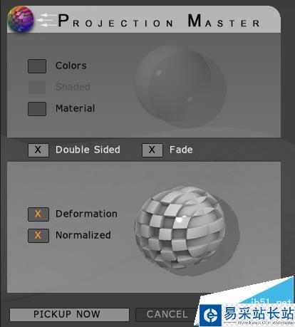 6、繪制完畢以后,按鍵盤(pán)上的“G”鍵,彈出投影大師的設(shè)置面板,勾選“Double Sided雙面”選項(xiàng),這樣您繪制的置換效果就可以同時(shí)應(yīng)用于物體兩面了。點(diǎn)擊“Pickup Now”按鈕。旋轉(zhuǎn)模型,你會(huì)發(fā)現(xiàn),模型的兩面都被繪制上了置換細(xì)節(jié)。