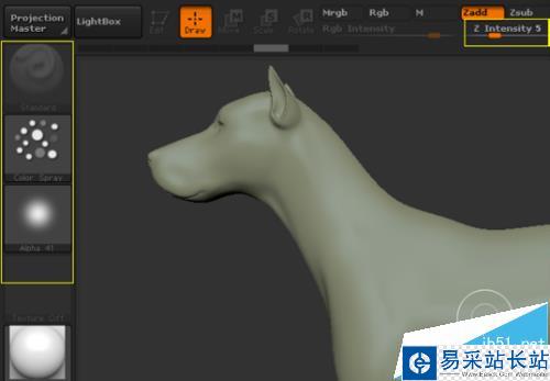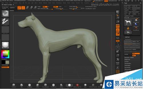 1、繪制前提示:進(jìn)入投影大師模式之錢務(wù)必大細(xì)分調(diào)至到最高級(jí)別。在工具控制面板中,單擊“Load Tool”按鈕載入工具。您可以使用自己制作完成的模型,也可以使用ZBrush默認(rèn)提供的模型,在畫(huà)布中按住鼠標(biāo)左鍵并拖動(dòng)拉出模型,按“T”進(jìn)入編輯 模式。按Shift鍵讓模型的側(cè)面完成處于正角狀態(tài),按F鍵最大化居中顯示物體。