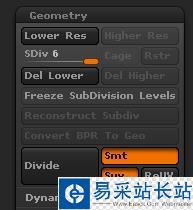 2、此時(shí)將鼠標(biāo)懸停在工具控制組中的縮略圖上查看模型信息,由于網(wǎng)格數(shù)量較低,不能取得較好的置換效果,所以繼續(xù)細(xì)分,激活Tool>Geometry>Divide,設(shè)置細(xì)分級(jí)別為最高。