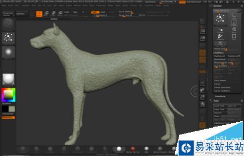 5、現(xiàn)在就可以繪制模型的凹凸細(xì)節(jié)了,調(diào)整筆刷尺寸,用筆刷涂刷整個(gè)模型。