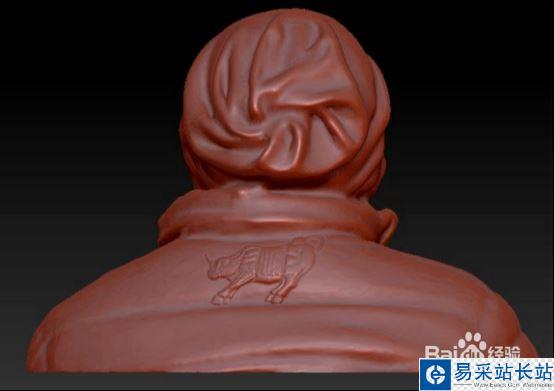 4、繪制浮雕:設(shè)置好筆刷的強度,將模型放置好,在人像模型的背后拖拽出浮雕模型。注意,雕刻的第一筆決定了浮雕的中心位置,筆刷的強度決定浮雕的深淺。如果對雕刻的效果不滿意,可撤銷重做。可以對模型做一些光滑處理,效果如圖所示。