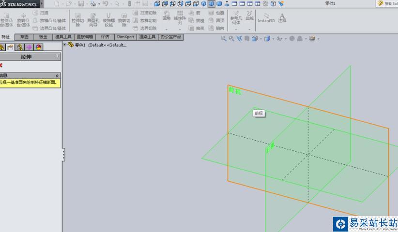 1、首先打開solidworks再選擇特征選項卡>拉伸凸臺/基體按鈕