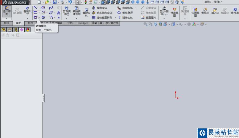 3、自動切換至草圖功能選項卡,任意選擇一個繪圖工具進行繪圖制,在此選擇邊角矩形