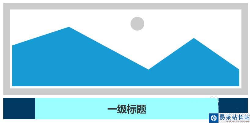 4、設(shè)置第二個(gè)矩形框填充色,并拖一個(gè)一級(jí)標(biāo)題到矩形框上,如下圖所示: