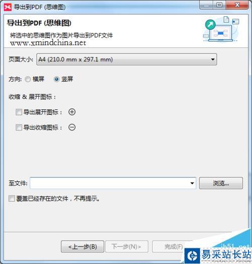 3、點(diǎn)擊“下一步”,進(jìn)入導(dǎo)出設(shè)置對(duì)話框(以PDF文件為例);