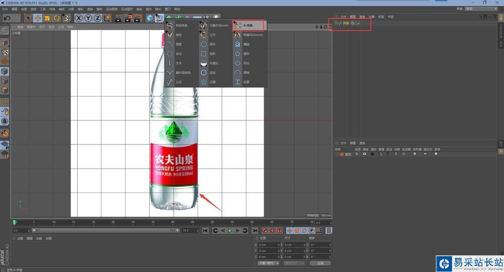 2、然后,利用b樣條,沿著礦泉水瓶的邊框進行繪制路徑樣條,不用將其閉合。(這個沒什么好講的,多練習,b樣條的使用自然就熟練了)