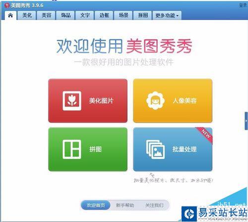 1、打開美圖秀秀這款軟件,進入美圖秀秀的操作界面,如圖所示: