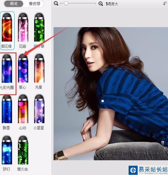 8、點擊七彩光圈在圖片里拖動鼠標左鍵就得到了七彩光圈效果,最后效果圖所示:
