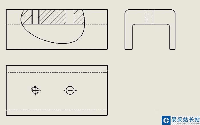 8、當然如果不知道參數的話,可以在深度參考選項中選擇俯視圖中孔的輪廓線,也可以進行剖視,然后刷新一下,就完成剖視。