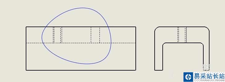5、根據軟件的提示在相應的視圖中畫出封閉的輪廓,默認為樣條線,也可以改為其他線條,