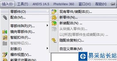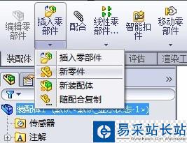2、從commandmanager面板中點擊插入零部件——新零件,或從插入菜單中選擇插入——零部件——新零件。