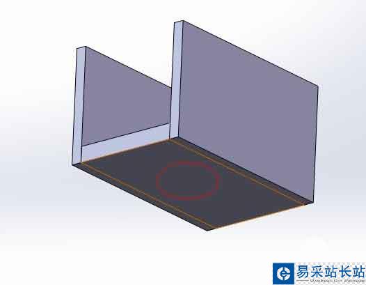 3、此時光標會變成指針側下方有個綠色箭頭,此時不要亂點,對準裝配體的一個面點擊,然后新零件會處于草圖編輯狀態,此時不要繪制任何草圖,直接點擊右上方圖標退出草圖,新零件處于特征編輯狀態。