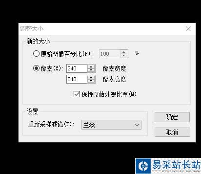4、在上面命令欄里找到調(diào)整大小,調(diào)整到我們需要的大小,注意原始圖像百分比勾掉