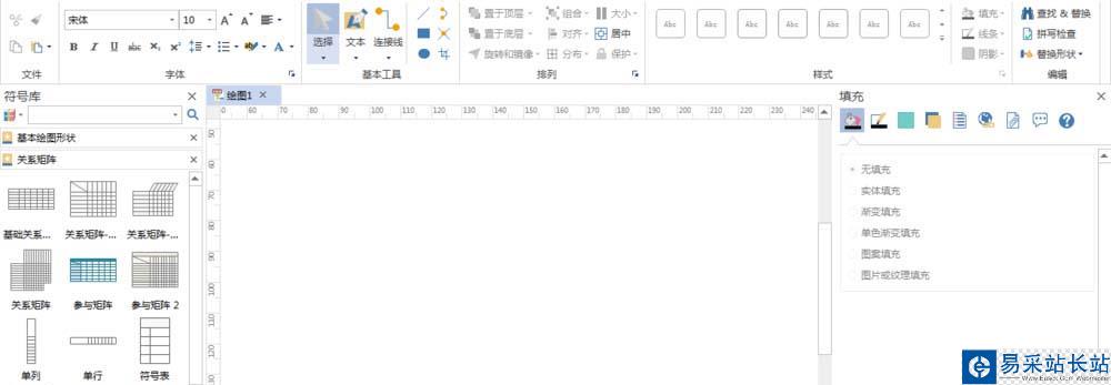 3、在“關系矩陣”菜單欄中找到“關系矩陣-垂直標題”,拖曳一個到畫布上,如下圖所示: