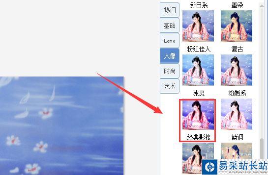 6、點擊人像選項,在其內(nèi)找到經(jīng)典影樓選項,如圖所示: