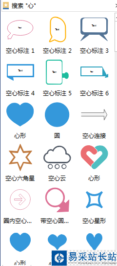 1、在庫上方的搜素框輸入形狀名稱,比如“心”。