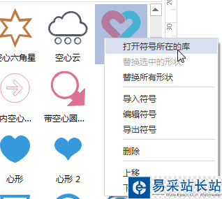 2、點擊搜素鍵開始搜索。所有名字包含心字的形狀都將展示在庫下方。