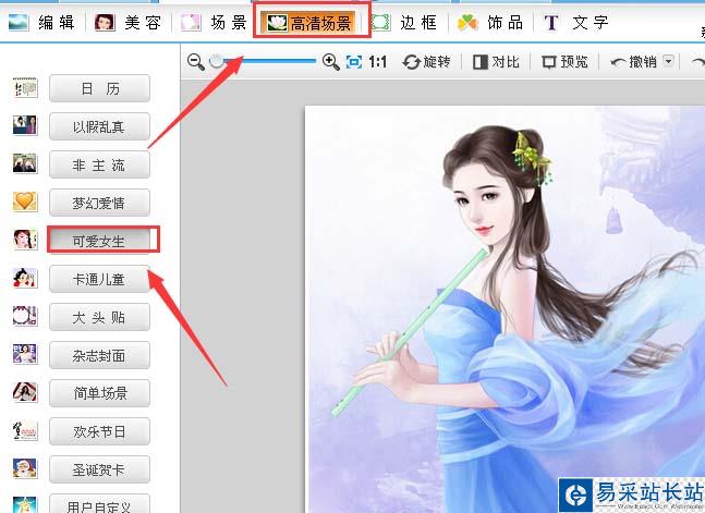 5、在該界面內找到高清場景選項,并在高清場景選項里找到可愛女生選項,如圖所示: