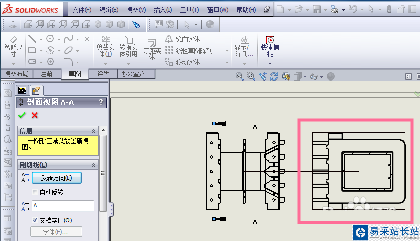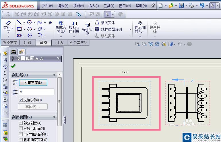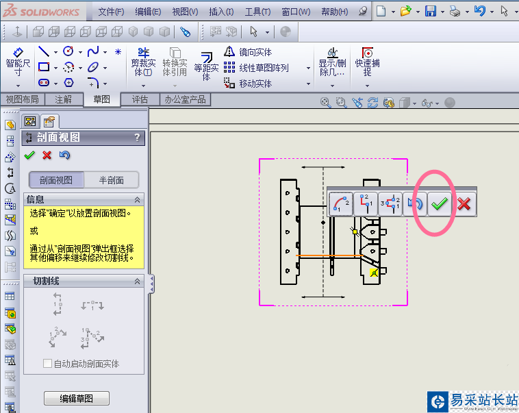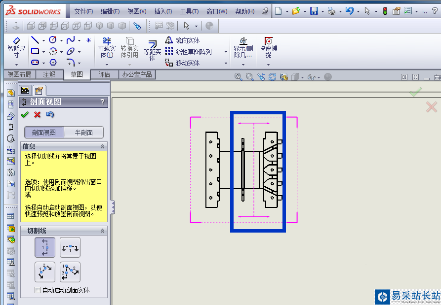 SolidWorks 2013制作工程圖的時候,剖面視圖是對個別地方看不清楚,或者表示不出尺寸的時候,利用剖視圖來解決標識尺寸。今天來給大家介紹下剖面視圖如何繪制。