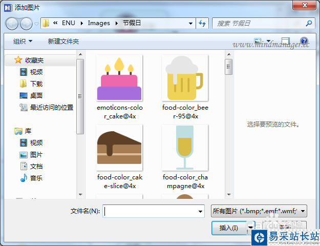 3、然后你可以在打開的對話框中,選擇從文件或資源庫中插入圖片,默認(rèn)路徑為資源庫;